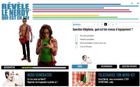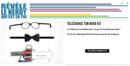The site features a series of quick and amusing elements: a test, a nerd “generator” and a nerd “kit” to be downloaded and used in the offline world.