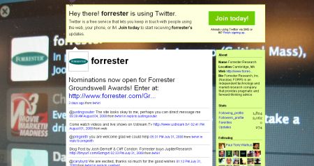 The guys at Fluent Simplicity have created the Twitter Brand Index, an impressive collection of links to brands and small/medium size companies that have joined the Twitter Mania.