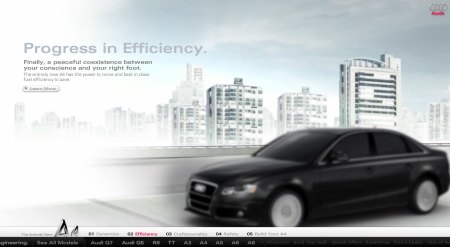 The latest mini-site of the series, has gone live recently, and is dedicated to the A4 model. Althought it is a very corporate (boring) site (if you aren’t specifically interested it in the car) I like it because of its autoplay system for navigation.