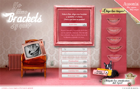 Actually Ausonia sells sanitary pads rather than dental braces. The site follows up on their last TV campaign, which features a self-confident mom encouraging her son to seduce the girl he likes by shamelessly grinning at her, showing his new very patent braces. The spot has been quite talked about, primarily because of the funny way the kid speaks due to the braces.