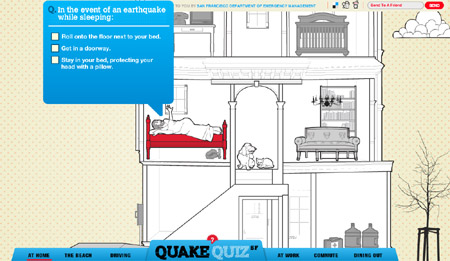 In the US, the San Francisco Department of Emergency Management has launched a website to explain citizens what to do in case of an earthquake. Given the educational goal of the project, the experience is conceived as a quiz.