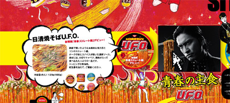 As usual, I don’t understand a word, but I love the illustrations on the Nissin Ufo Noodles website launched Japan.