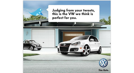 Nice to discover interesting content via Twitter. Yesterday, for example @_RGA posted about this rich media banner that profiles your tweets and gets back to you with the reccomendation of the ideal Volkswagen for you.