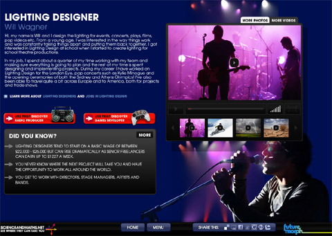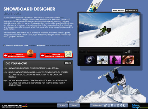 It’s a smart educational project, with a rare and strong practical focus. The website shows a series of cool aspirational jobs (from game developer to snowboard designer to food technologist) while describing the educational path to start those careers. I like it because it wants children to think (at least for a couple of seconds