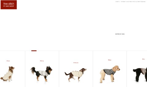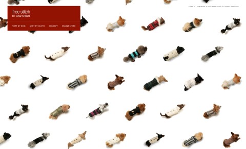 From Japan another great example of digital communication and a clear demonstration that the online media and online commerce are (more than) ready to support any brand or product (if the communication is done in the right way). Today we talk about dogs, fashion and ecommerce. The brand is called Free Stitch and produces clothing for small dogs. I personally hate the idea of putting a ridiculous cloth on my dog but I appreciate small dogs might suffer cold… and this website would definitely push me to buy something fashionable.