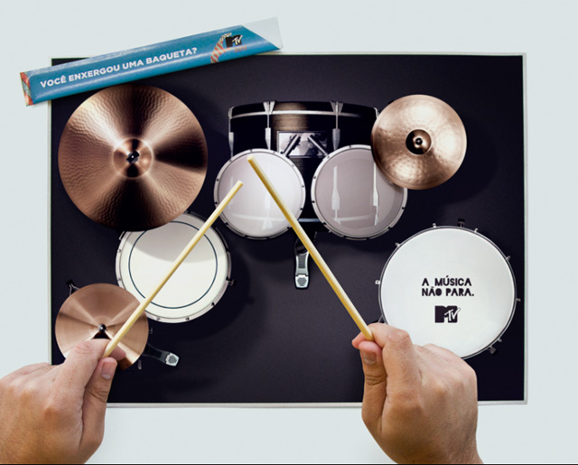 Pretty cool and smart ambient marketing campaign by MTV in Brazil. Most people just can’t help playing with the chopsticks while their wait for their food…