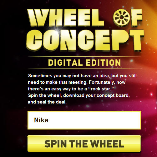 Tribal DDB have created a clever tool to try and get new staff. The idea is based on the presumption that ideas are easy to generate, so you input your brands name and spin the wheel. You can then download the concept in a pdf with all of your branding already incorporated. There is also a shmaltzy ad-speak paragraph generated that is pure ‘crap-speak’.