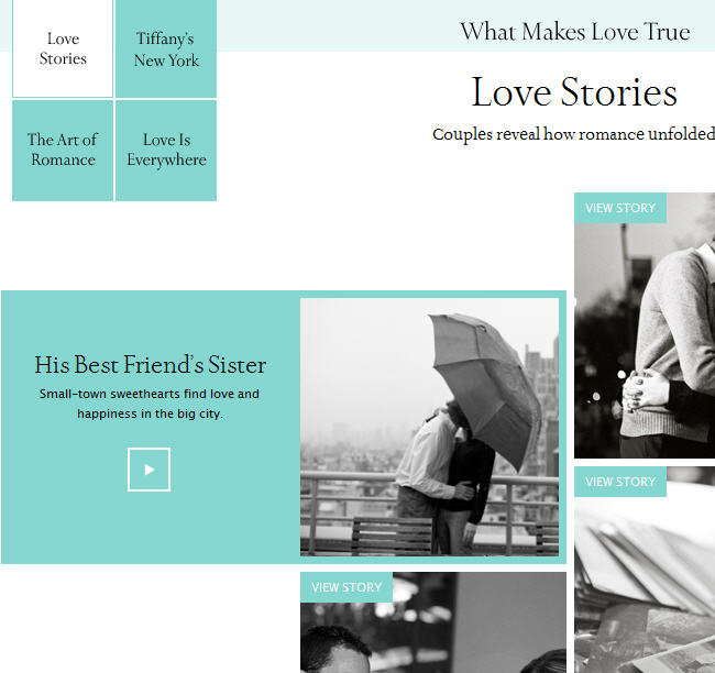 Tiffany & Co. have introduced a new website and iPhone application that are designed to share tales of real-life couples who recall — on film and in photographs — romantic roads taken in life. Visitors will also find a compendium of tips for love-struck couples. In addition, the website explores Manhattan, which Tiffany & Co. called the “ultimate city for falling ecstatically in love.” Find romantic restaurants, tag a map where you had a romantic encounter… For a jewellery shop it’s a pretty good effort.