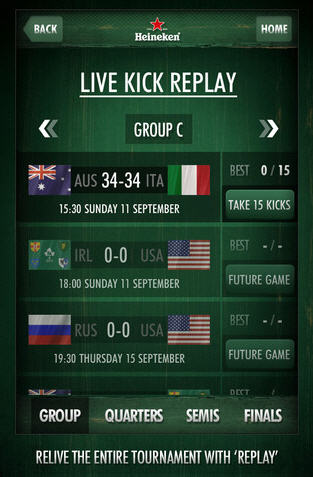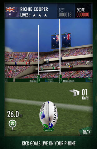I just found this cool new app. It’s a new iPhone App for the Heineken Rugby World Cup. Have you ever dreamt of kicking the winning goal at the Rugby World Cup? Now you can be part of the on-field action and kick real penalty goals and conversions, live, as they happen. Feel the same pressure, as you take the same kick, from the same spot, in the same conditions… LIVE!