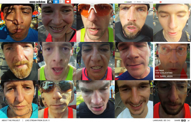 adidas wants to show us what running a marathon really looks like, minute by minute. 15 runners from all levels of fitness and experience agreed to wear head mounted cameras during this year’s Berlin Marathon. These are their faces…