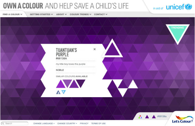 Own a colour makes clever use of an existing entity, the colour range of our web world. Not surprisingly many donors dedicate the chosen colour to their own child.
