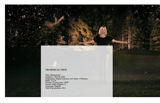 White, minimalist and in HTML 5. Melancholia by Lars Von Trier is not my kind of movie. But definitely my kind of website. Love the way they used the vertical scroll integrated with the storytelling.