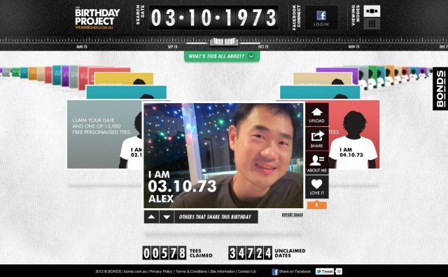 The first 15,000 entries on their microsite will receive a shirt with the words ‘ I AM <BIRTHDAY>’. Famous ambassadors like Pat Rafter and Dame Edna as well as average Aussies pose with their birthdate on posters, at events and online.