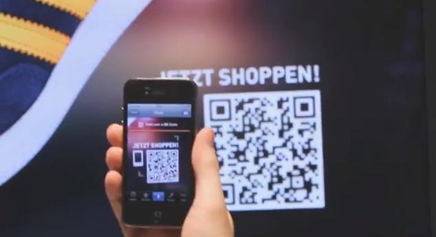 Social sharing is built into the experience via facebook. A QR code is generated linking users to the mobile commerce site with the shoe, size and colour - ready for purchase and next day home delivery.
