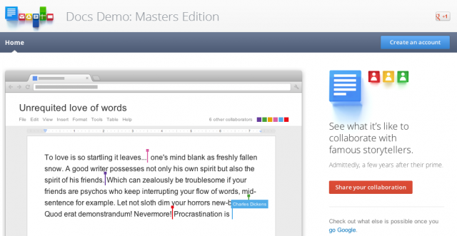 In what sounds like an 80s ‘Trivial Pursuit’ package, Google is demonstrating how collaboration works within Google Docs. This is especially interesting when you share a text with literary greats like Charles Dickens or Edgar Allan Poe.