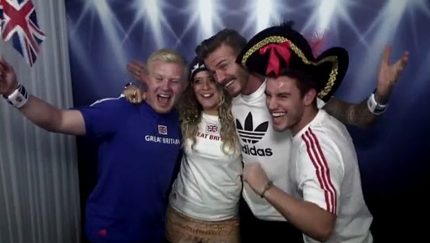 The initiative for the London Olympics is probably even cooler. A photo booth was installed in a shopping mall in East London to allow British fans to have their photos taken, showing their support the team. The surprise: football superstar David Beckham suddenly peeking around the corner of the booth, joining the photo op with the fans.