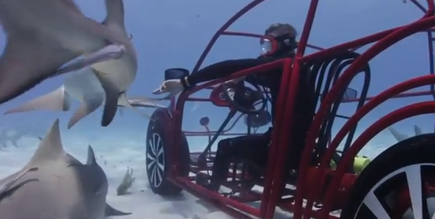We see an incredible amount of product placement/integration for cars but the lastest move from VW cannot go unnoticed.  As sponsor of the 25th anniversary of shark week on the Discovery Channel they’ve built an underwater shark cage in the shape of the new beetle.