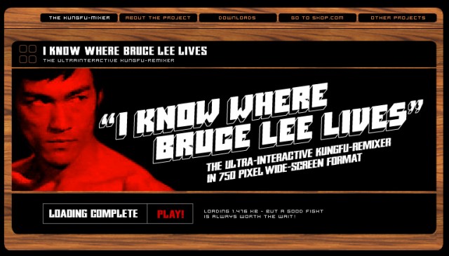 Flash remixers such as this one have been around for quite some time. In fact I myself dabbled in this genre more almost 12(!) years ago with the KungFu art piece “I know where Bruce Lee Lives“.