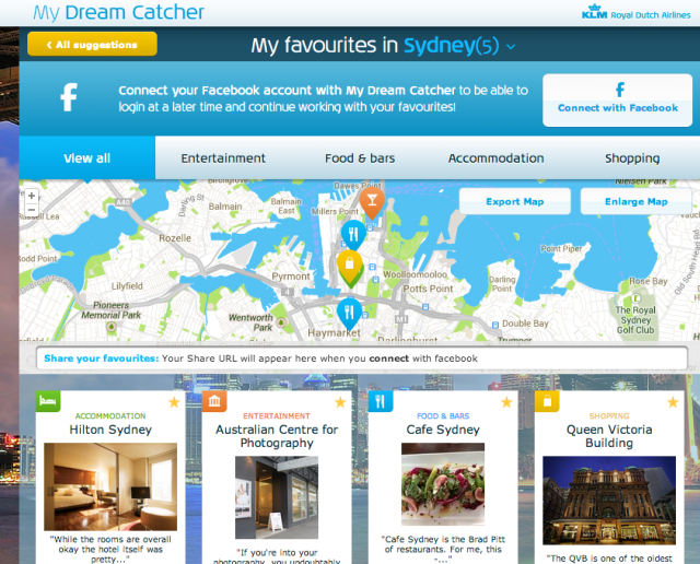 Following on from the February release of KLM’s Must See Map is this new travel aid. The tailor-made travelling service cross-references data from 12 different global services such as Trip Advisor, Yelp, Google etc and allows users to plan trips based on thousands of recommendations from other humans.