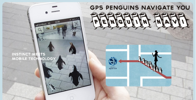 This is where the Japanese ad & PR agency called Hakuhodo comes in. Hakuhodo’s creative team took human distractibility as the starting point in coming up with their solution. The aquarium is only 1km (0.62miles) from the closes public transit station. To help people not get disinterested en route, they created the Penquin NAVI app: an augmented reality penguins that guide visitors right up to the aquarium’s gates. This is where the second behavioral insight comes in: humans are enamored by cute animals and NAVI penguins move like the real things. Cuteness overload basically prevents people from looking anywhere else.