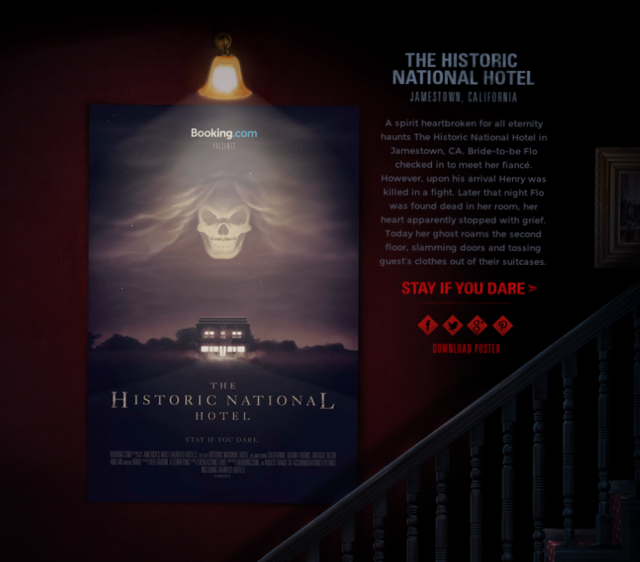 Resn and Wieden + Kennedy Amsterdam created the scariest HTM”Hell” 5 site on the planet for booking.com. It’s a fun adventure of the most haunted hotels they have on their books. Nice to see as you go up the stair case you parallax scroll UP not down for a change ![]()
