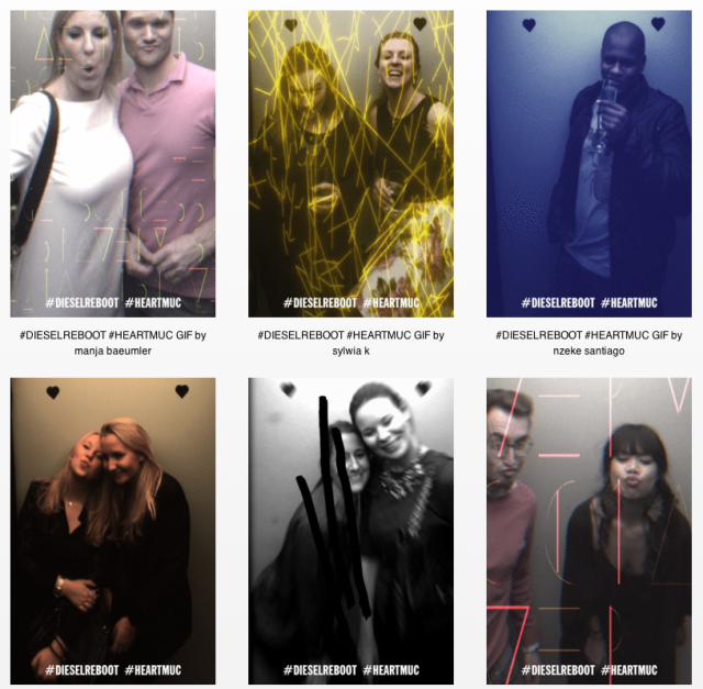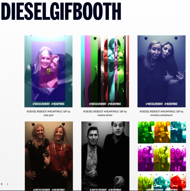 The GIF booth works like a photo booth, going a step further to produce GIF animations instead of photographs. It uses VVVV technology and a large-format touch-screen interface. Visitors can create animated self-portraits and publish them to Tumblr in real-time. For the flagship store opening in Frankfurt, the GIFs from the booth were also instantly transmitted and displayed in a window installation composed of seven big screens, each individually managed by a Raspberry PI microcomputer.