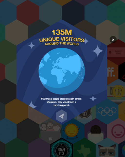 2013 was a pretty epic year for Vimeo - gaining ground on YT and being the favoured vid platform for quality. Click on all the little .GIF guys to see all the mad vids they had in 2013.