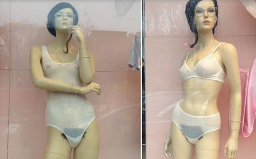 More news from the American Apparel department: just in time for Valentine’s Day (which is the day when men apparently maniacally buy lingerie), AA outfitted mannequins in its East Houston store, NYC, with a little bit of hair. Pubic hair that is. I am going to check it out tomorrow, it looks, well … authentic.