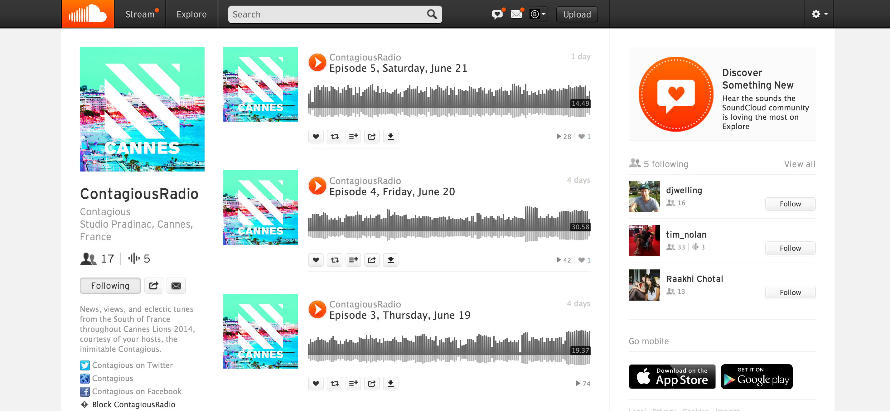 At first I was surprised by what seemed like a low-tech choice of radio/podcasts by Contagious Magazine to deliver their Cannes roundup. However, after listening to all 5 episodes I think it’s a great choice.