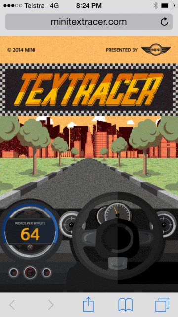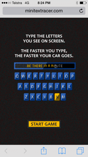 Designed to be played on mobile only, MINI TEXTRACER looks like a simple game. Control the car by typing a given text message.