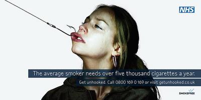 In the UK, the Department of Health is running an integrated campaign against smoke. Below you see some of the strong images which belong to the Get unhooked series of ads.