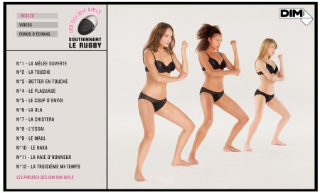 1. Take an international sport event that will get men's attention for over a month (the Rugby World Cup); 2. Realize that women will go crazy during the event because (in most of the cases) they don't understand the game and, most of all, they don't understand why men should prefer rugby to them; 3. Consider the product you sell (lingerie); 4. Agree with me that Dim Dim Girls it's a great idea because: A) It explains the key rugby rules to women, using their own language with explanatory examples that put the sport in context with real daily life situations B) It shows several nice girls in lingerie to men, who next time that will have to buy something for the wives/lovers/friends would probably remember the easy DIM brand name.