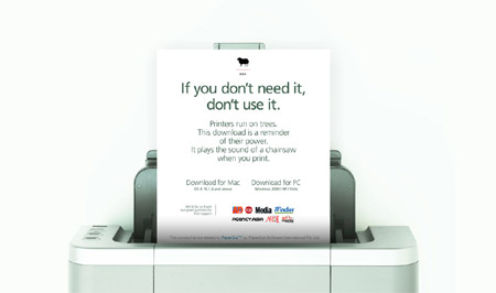 It was actually an amusing hoax. The idea is that everytime we hit the "CTRL + P" button on our keyboard we are actually activating the digital chainsaw to destroy trees. We print too much, and save too little. Make sure to download the chainsaw app on your computer which will play the horrible chainsaw sound effects whenever you press "CTRL + P" on our keyboard. Just a little gnetle reminder the next time we print out those one-liner emails.