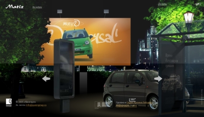 From Russia a good website to introduce the new Daewoo Matiz. Visitors are invited to move around the city to discover the car's models. It's night so the urban setting looks rather charming, I'm sure you'll appreciate it even if it's in Russian. Just take your time while the site loads the first time you visit it...
