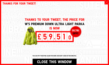 A new one from Uniqlo, Lucky Counter: You tweet about a product and its price will come down for everybody, loving the social interaction around the whole thing.