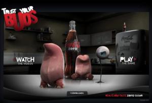It’s called Trust your Buds and. among a bunch of goodies, it features the adventures of two pink slimy dudes trying to spot the real Coke Zero bottle. Your task in the advergame is to make the tongues jump around the kitchen to spot the bottle. Trust me, it is not as easy as you might think.