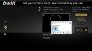 I’m a bit late with this, but the idea was nice, so I post about it anyway. Back in the beginning of December, to support Real Madrid in the challenge vs Barcelona, BWin, sponsor of the team, has put online an interesting activation action for the team supporters. Dubbed Metete Dentro (something like “put yourself inside”) the site invites users to pick a Real Madrid player and then see themselves as the player exulting after a goal.
