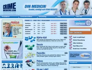 Crime Medicine has nothing to do with CSI. Crime Medicine is a campaign launched in Sweden to inform citizens that more than 60 percent of prescription drugs sold on the internet are counterfeit and potentially dangerous, or substandard.