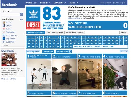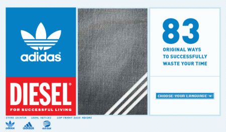 Of course there is a dedicated site to look at… http://diesel.adidas.com suggests 83 original ways to successfully waste your time, and you are invited to participate by uploading your pictures and videos, to testify on each one.