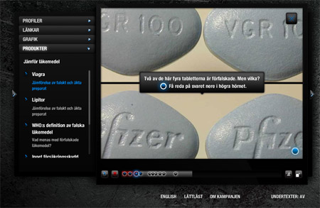 You don’t have to speak Swedish to appreciate the video and the website, but in case you are interested in learning more about the reasons and the goals behind the action, you can read the press release on the Swedish Medical Products Agency. Among the other things, you will be surprised to discover that 3 percent of the Swedish population between 25 and 65 years old claim in a survey from 2007 that they have ordered medications on the internet.