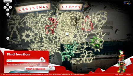 So a few days ago i heard about this nice campaign called “Christmas lights”developed by Scholz&Volkmer for Coke in Germany, in which you can use a mashup of Google Maps to zoom in until you find your friends’ houses.