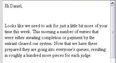 Nice Daniel, congrats on becoming a judge and I certianly look forward to reading this post as you start blogging through the awards!