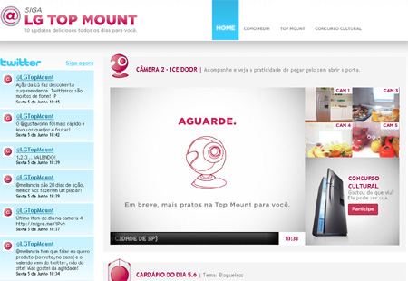 In Brazil, LG has launched an online campaign that puts Twitter at the center of the action to promote a fridge model called Top Mount. Four cameras capture live a fridge and the food inside it. Users can watch the live stream on the Web and “order” the fresh food using their Twitter accoun t and messaging @LGTopMount. The first who tweets the request will receive a home delivery the day after (only if he/she lives in the Sao Paulo area).