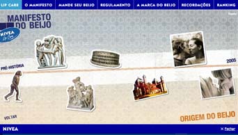 In Brazil, Nivea has launched the "Manifesto do Beijo" (The Kiss Manifesto) to promote its Lip Care product. An advertainment style micro-site created by A1.Brasil allows visitors to send virtual kisses to friends and lovers. The more kisses you send, the higher the chance to win an iPod Mini. The site also features "kiss related" content such as the history of kisses, a list of possible ways to kiss, wallpapers and a series of emoticons.