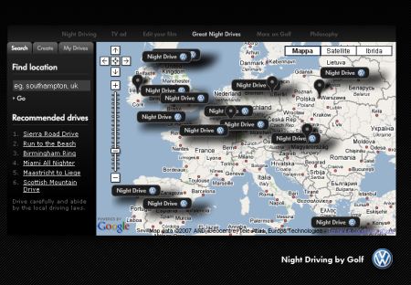At the same time I believe it's weird but interesting to note that they've opted for a par condicio (I feel so Latin tonight!), using Google Maps to present and allow people to submit a series of great "night drives" around Europe.