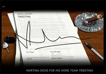 This is my performance has striker for my hometown team Triestina. Of course at the end of the path you have a tell-a-friend call to action.