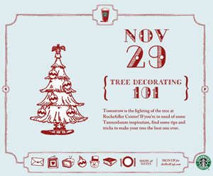 This year Starbucks is again online with its Christmas minisite named "The Red Cup". Created by Wieden + Kennedy the site presents every day a fresh Xmas related tip. From tree decorating to fire building and ice skating, Starbucks provides you with all the indications to get the best out of Christmas time.